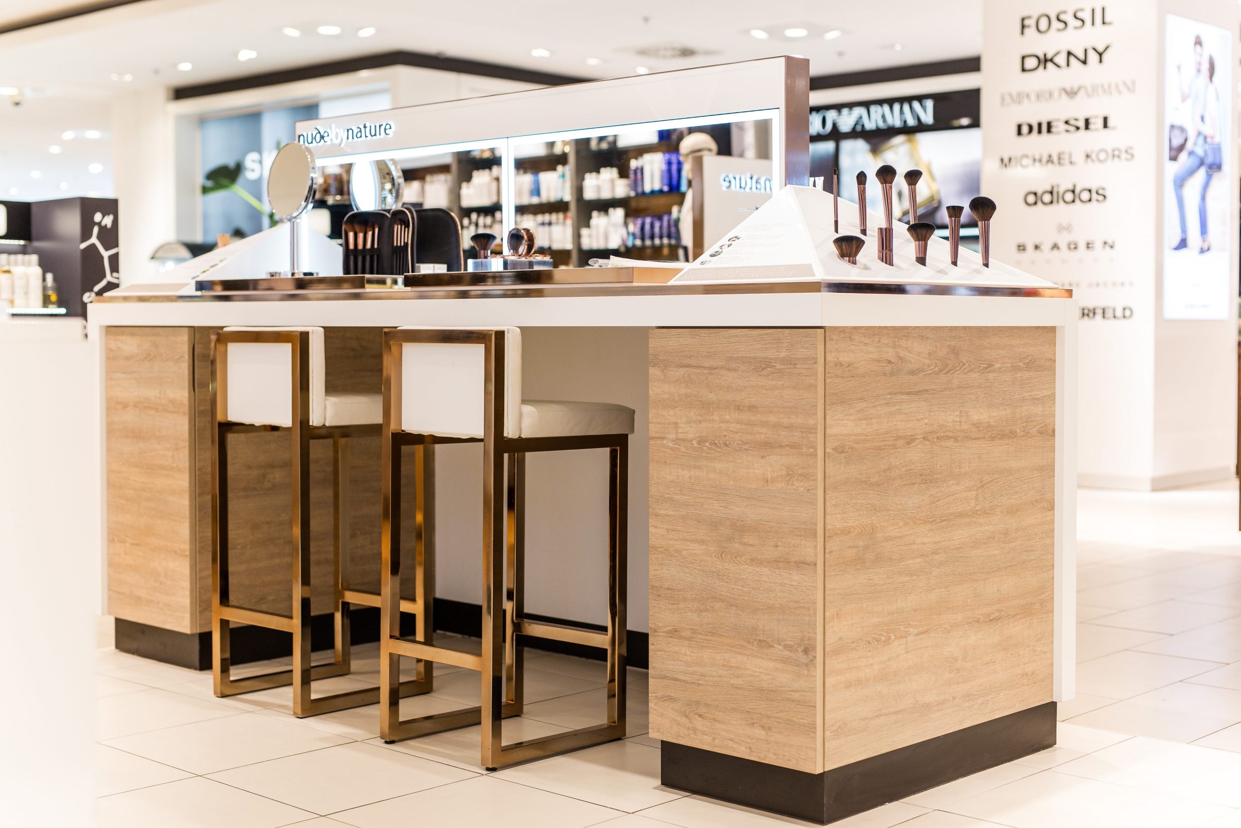 We at Körling Interiors helped the Australian cosmetics brand launch in the German market in 2016. The furniture we produced allows the brand’s products to speak for themselves – natural colors and materials, as well as a simple yet expressive concept, underscore the brand values.