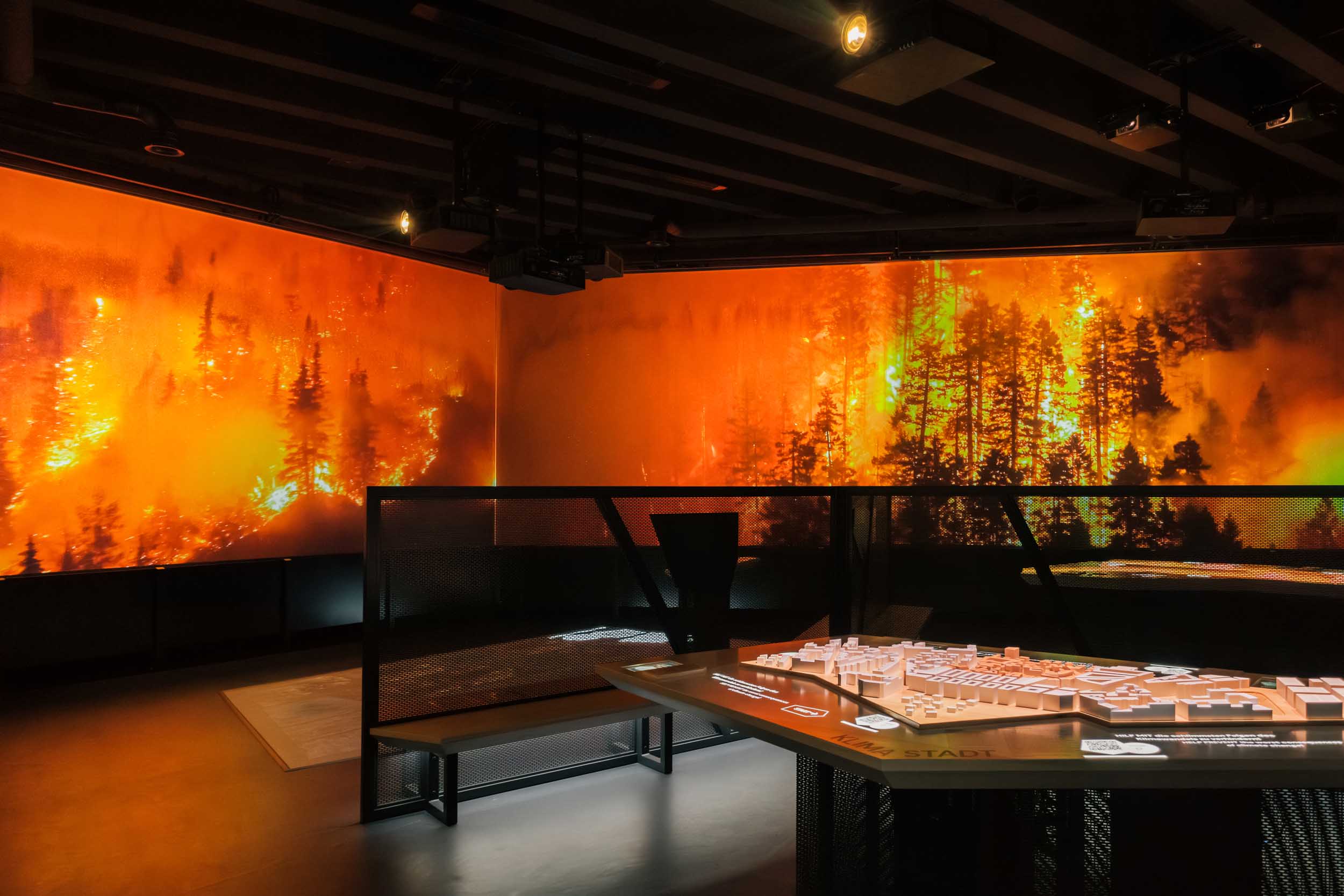 In einer fesselnden Simulation des Wetterzyklus können die Gäste hautnah erleben, wie Regen, Wind und Hitze wirken. An den innovativen Hands-On-Exponaten, darunter ein detailliertes Stadt- und Landschaftsmodell, verschmelzen analoge und digitale Elemente. Hier können die Besucher:innen auf extreme Wetterereignisse reagieren und die daraus resultierenden Folgen beobachten. Diese interaktive Erfahrung regt nicht nur zum Nachdenken an, sondern fördert auch ein Bewusstsein für das eigene Verhalten im Angesicht des Klimawandels. In der Ausstellung wird der Besucher Teil dieser wichtigen Auseinandersetzung.