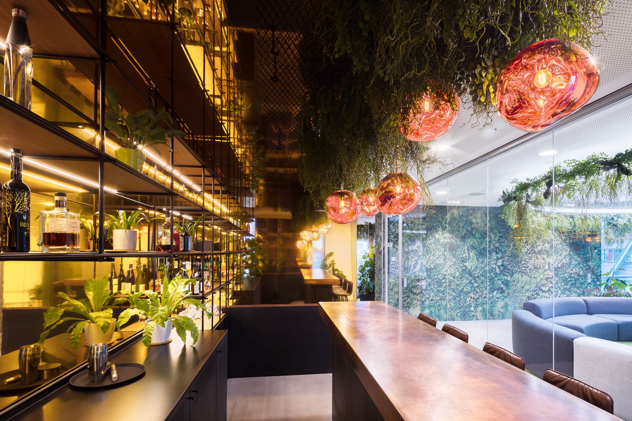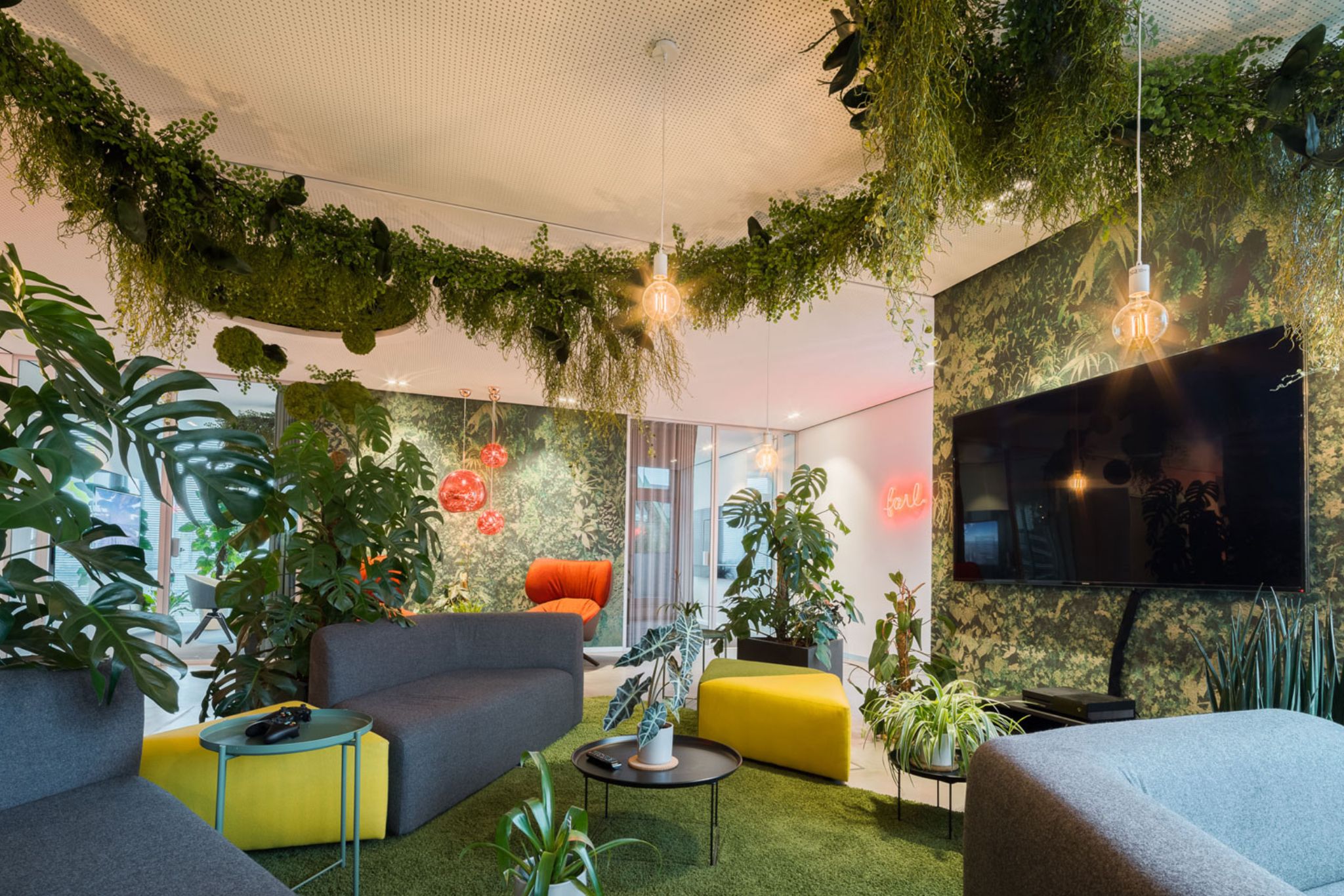 Der Name ist Programm: Pflanzenelemente auf dem Boden und an den Wänden, raumfüllende Wandbilder und modulare Sitzmöglichkeiten schaffen ein Dschungelerlebnis für die Sinne.